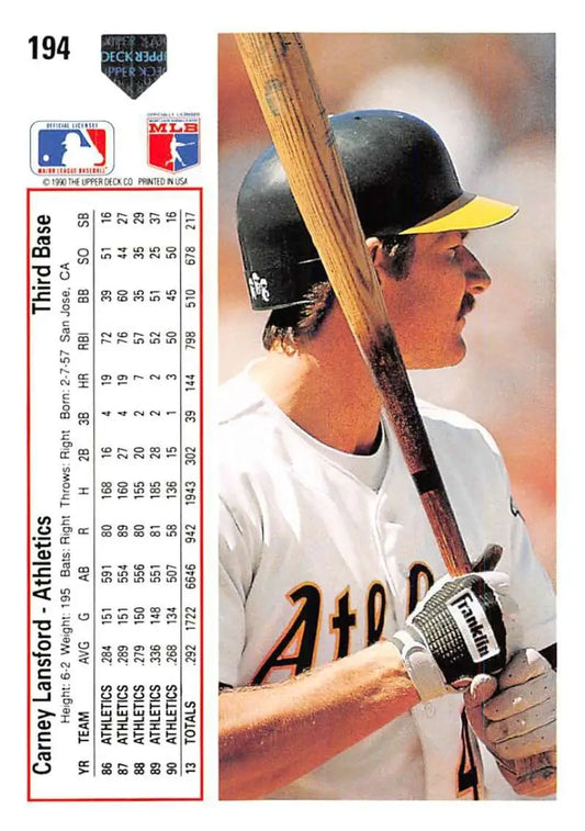 1991 Upper Deck #194 Carney Lansford NM-MT Oakland Athletics Baseball Card