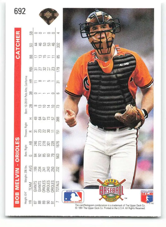 1992 Upper Deck #692 Bob Melvin NM-MT Baltimore Orioles Baseball Card