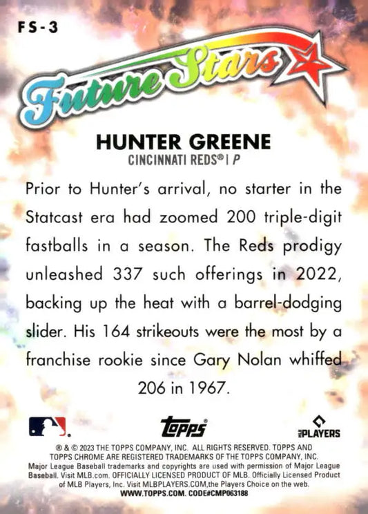 2023 Topps Chrome Future Stars Refractor #FS-3 Hunter Greene NM-MT Cincinnati Reds Baseball Card