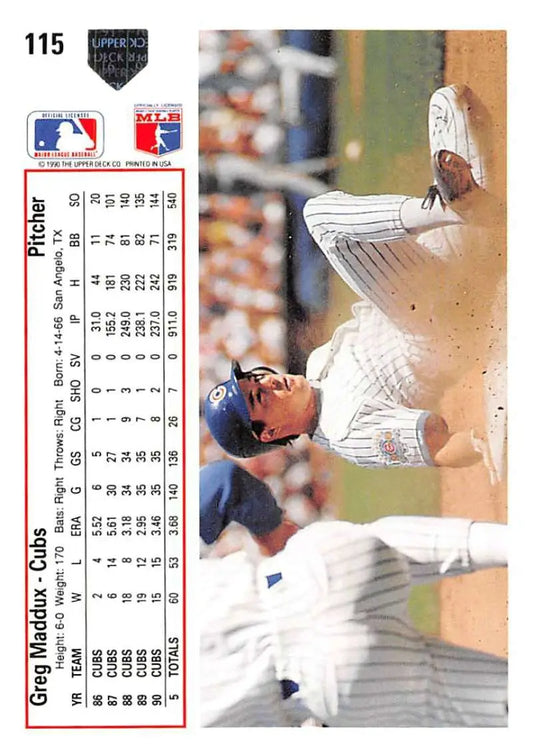 1991 Upper Deck #115 Greg Maddux NM-MT Chicago Cubs Baseball Card