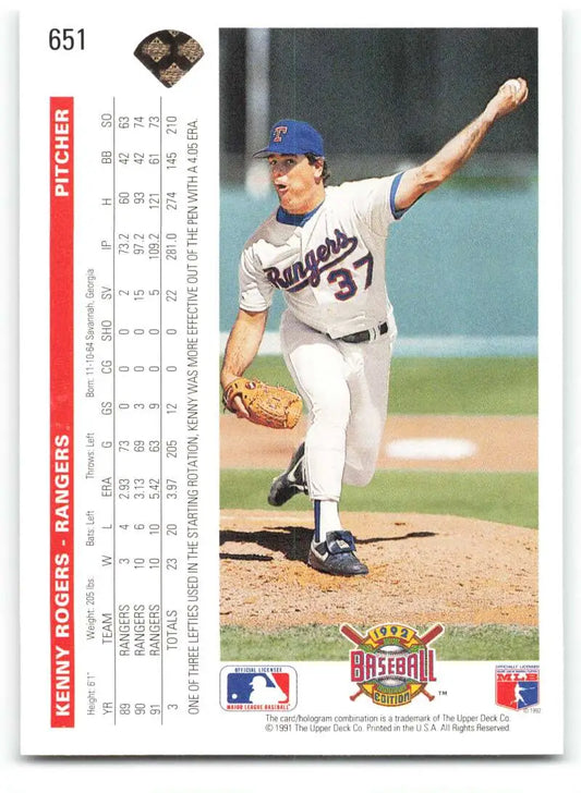1992 Upper Deck #651 Kenny Rogers NM-MT Texas Rangers Baseball Card