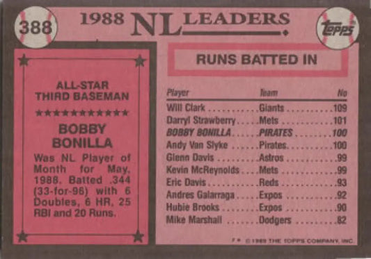 1989 Topps #388 Bobby Bonilla AS NM-MT Pittsburgh Pirates Baseball Card
