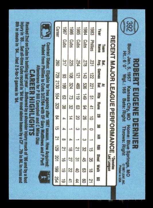 1988 Donruss #392 Bob Dernier EX Chicago Cubs Baseball Card