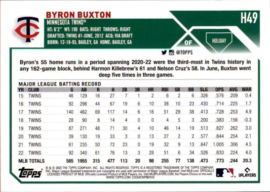 2023 Topps Holiday #H49 Byron Buxton NM-MT Minnesota Twins Baseball Card