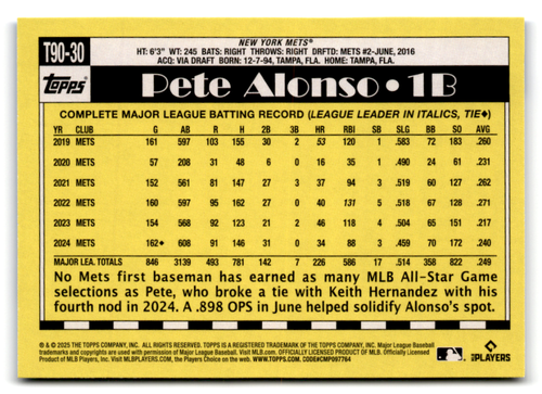 2025 Topps 1990 Baseball #T90-30 Pete Alonso NM-MT Mets ID:76868