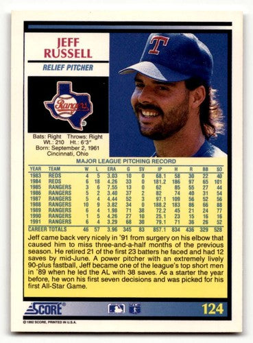1992 Score #124 Jeff Russell Texas Rangers Baseball Cards EX/NM ID:60469