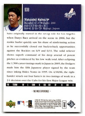 2006 Upper Deck Baseball Takashi Saito #938 RC Los Angeles Dodgers