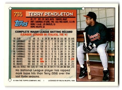 1994 Topps Baseball Terry Pendleton Gold #735 Atlanta Braves