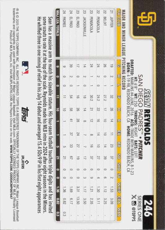 2025 Topps Diamante Foil #246 Sean Reynolds NM-MT RC Rookie San Diego Padres Baseball Card