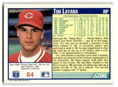1991 Score Baseball Tim Layana #64 Cincinnati Reds