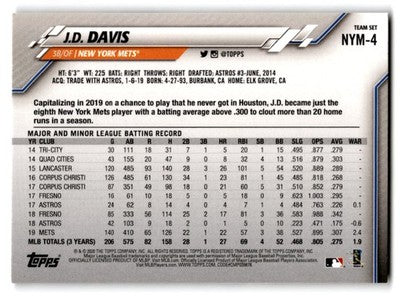 2020 Topps Baseball New York Mets J.D. Davis #NYM-4