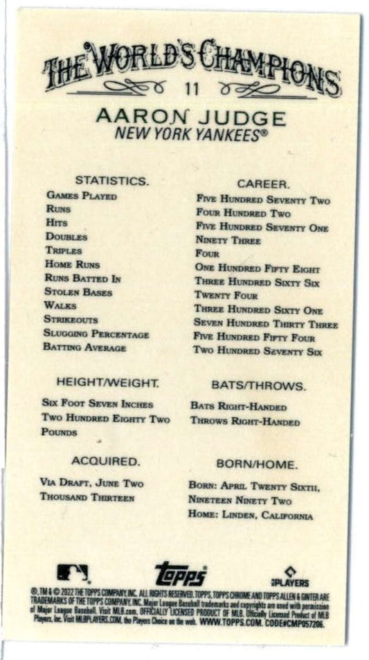 2022 Topps Allen and Ginter Chrome Mini Refractor #11 Aaron Judge NM-MT New York Yankees Baseball Card