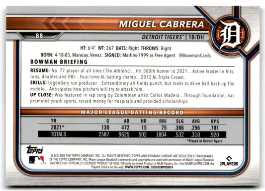 2022 Bowman Chrome #88 Miguel Cabrera NM-MT Detroit Tigers Baseball Card
