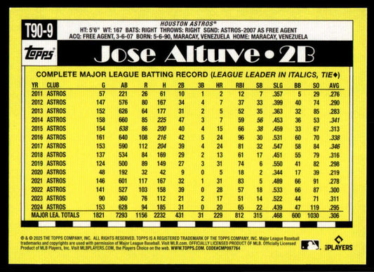 2025 Topps 1990 Baseball #T90-9 Jose Altuve NM-MT Houston Astros Baseball Card