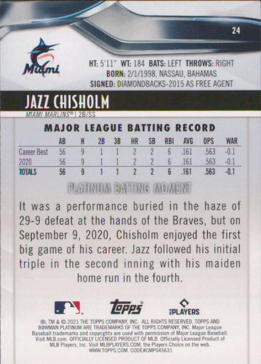 2021 Bowman Platinum #24 Jazz Chisholm NM-MT RC Rookie Miami Marlins Baseball Card