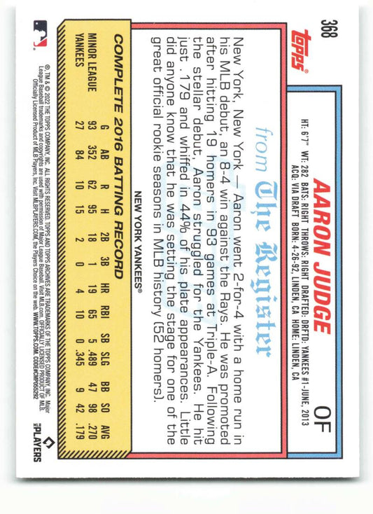 2022 Topps Archives #368 Aaron Judge NM-MT New York Yankees Baseball Card