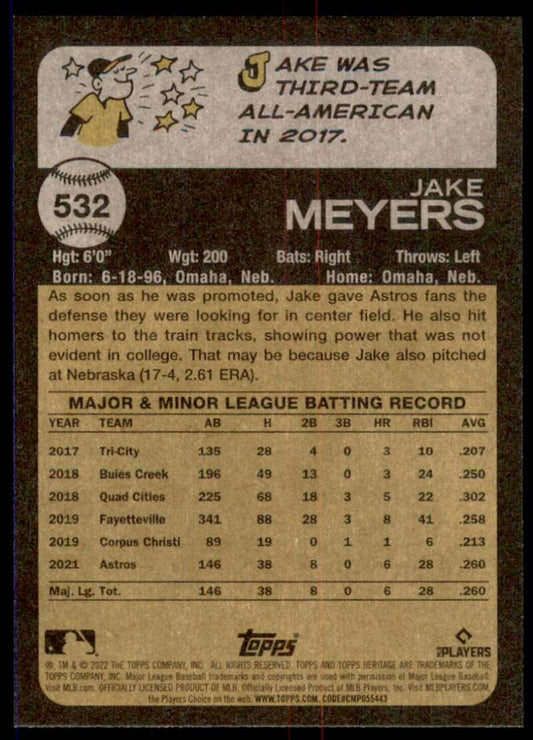 2022 Topps Heritage High Number #532 Jake Meyers NM-MT RC Rookie Houston Astros Baseball Card