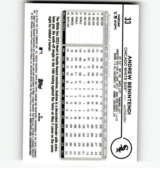 2024 Topps Chrome Refractor Pink #33 Andrew Benintendi NM-MT Chicago White Sox Baseball Card