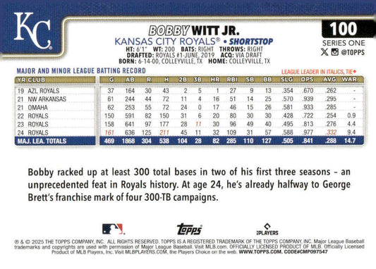 2025 Topps #100 Bobby Witt Jr. NM-MT Kansas City Royals Baseball Card