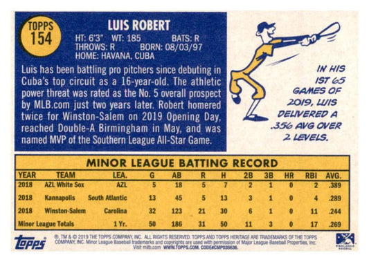 2019 Topps Heritage Minor League #154 Luis Robert NM-MT Birmingham Barons Baseball Card