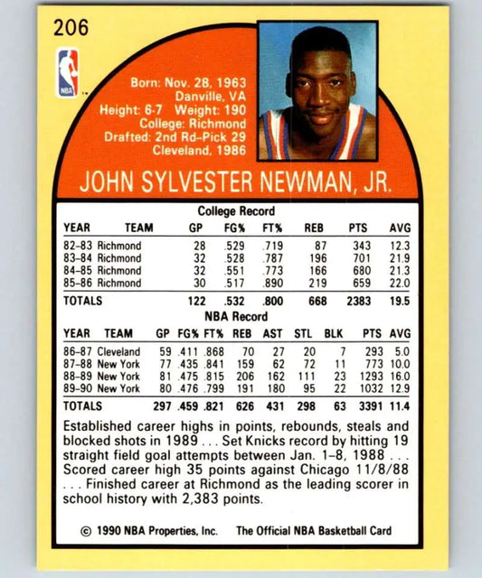 1990-91 Hoops #206 Johnny Newman NM-MT SP New York Knicks Basketball Card