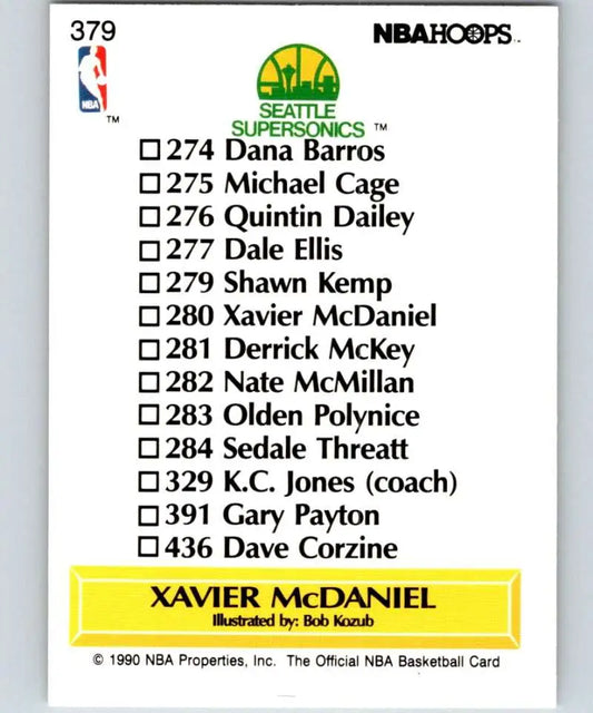 1990-91 Hoops #379 Xavier McDaniel TC NM-MT Seattle SuperSonics Basketball Card