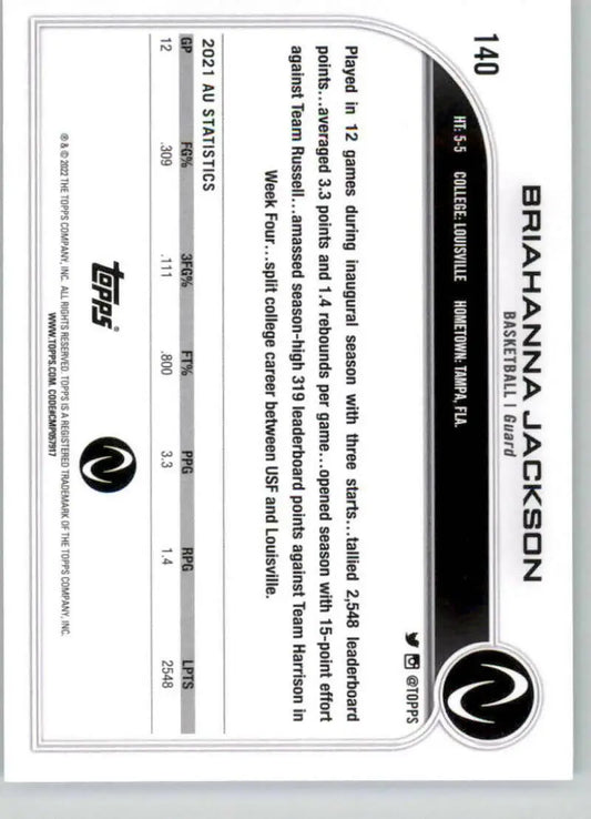 2023 Topps Athletes Unlimited All Sports 140 Briahanna Jackson Basketball Card