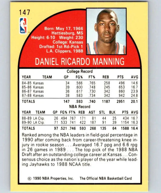 1990-91 Hoops #147 Danny Manning NM-MT Los Angeles Clippers Basketball Card