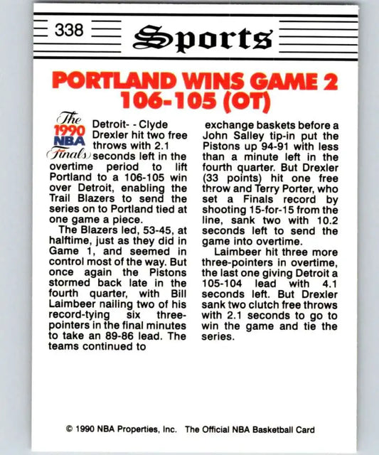 1990-91 Hoops #338 NBA Final Game 2 NM-MT Detroit Pistons/Portland Trail Blazers Basketball Card