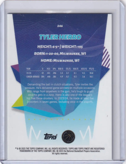 2024-25 Finest Basketball Sky Blue #246 Tyler Herro - Miami Heat