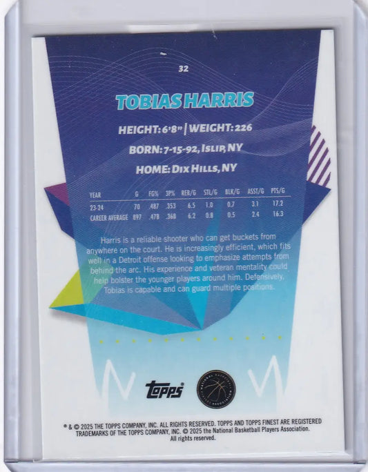 2024-25 Finest Basketball Sky Blue #32 Tobias Harris - Detroit Pistons