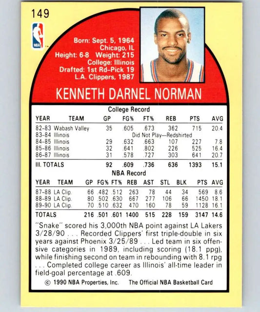 1990-91 Hoops #149 Ken Norman NM-MT Los Angeles Clippers Basketball Card