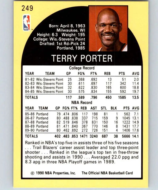 1990-91 Hoops #249a Terry Porter ERR NM-MT Portland Trail Blazers Basketball Card