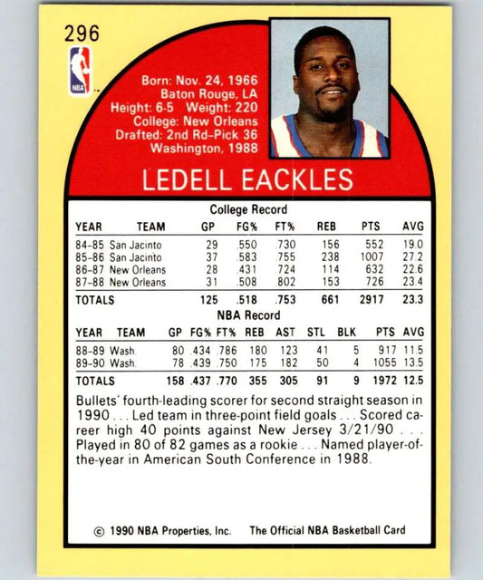 1990-91 Hoops #296 Ledell Eackles NM-MT SP Washington Bullets Basketball Card