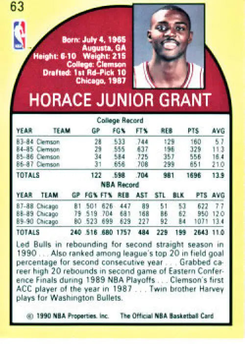 1990-91 Hoops #63 Horace Grant NM-MT Chicago Bulls Basketball Card
