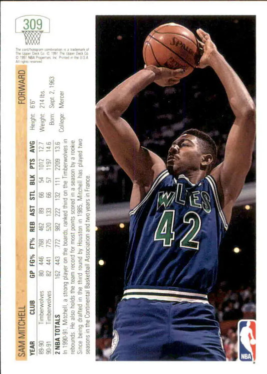 1991-92 Upper Deck #309 Sam Mitchell NM-MT Minnesota Timberwolves Basketball Card