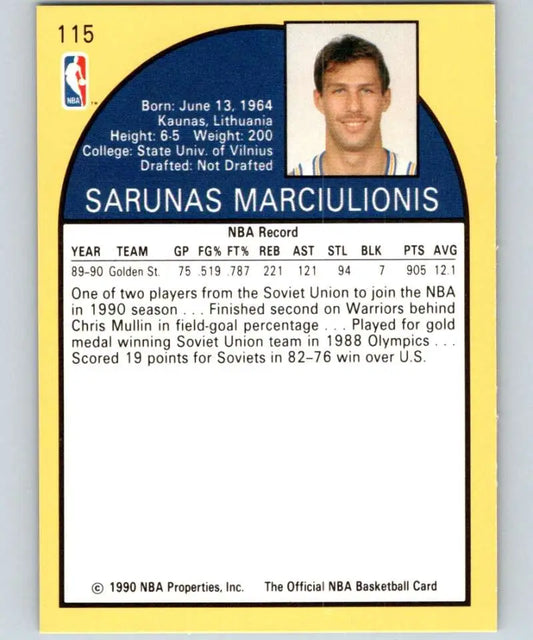 1990-91 Hoops #115 Sarunas Marciulionis NM-MT RC Rookie Golden State Warriors Basketball Card