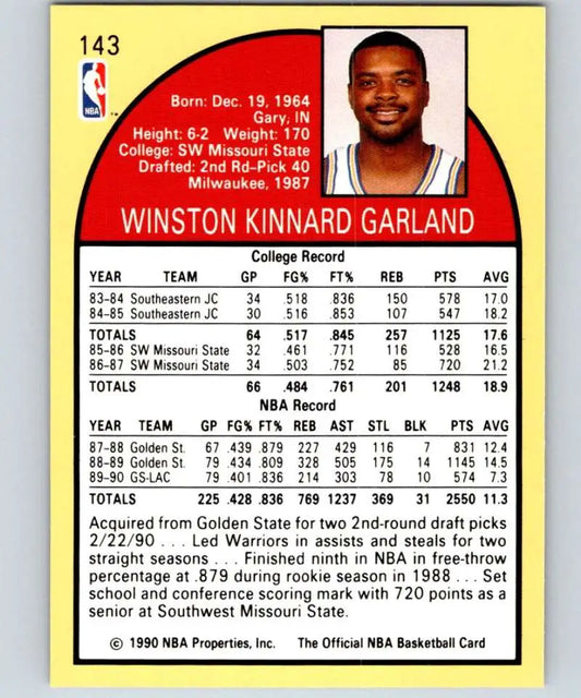 1990-91 Hoops #143 Winston Garland NM-MT Los Angeles Clippers Basketball Card