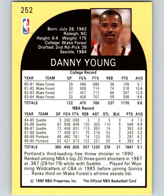1990-91 Hoops #252 Danny Young NM-MT Portland Trail Blazers Basketball Card