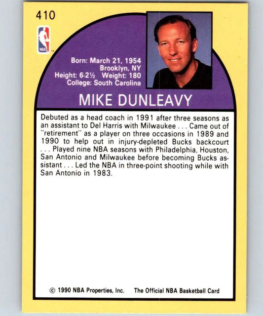 1990-91 Hoops #410 Mike Dunleavy Sr. CO NM-MT Los Angeles Lakers Basketball Card