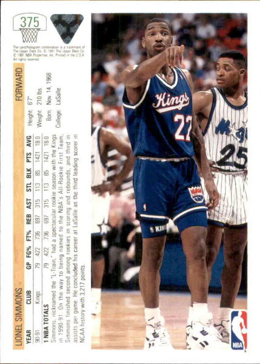 1991-92 Upper Deck #375 Lionel Simmons NM-MT Sacramento Kings Basketball Card