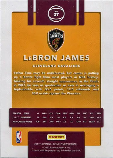 Panini Donruss Basketball 2017-18 Base Card 27 LeBron James