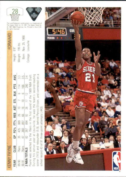 1991-92 Upper Deck #28 Kenny Payne NM-MT Philadelphia 76ers Basketball Card