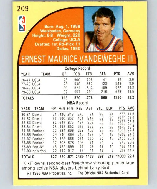 1990-91 Hoops #209 Kiki Vandeweghe NM-MT New York Knicks Basketball Card