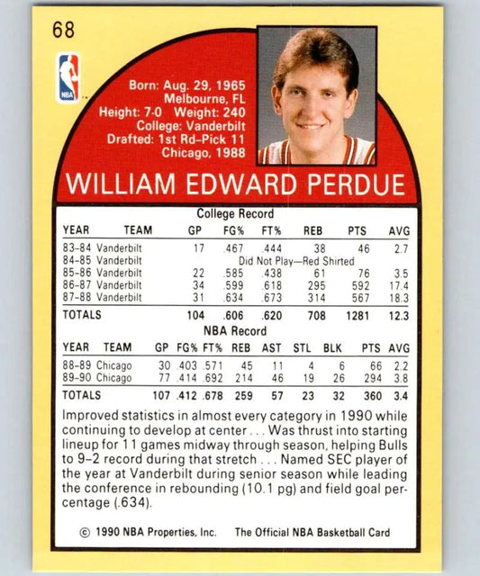1990-91 Hoops #68 Will Perdue NM-MT Chicago Bulls Basketball Card