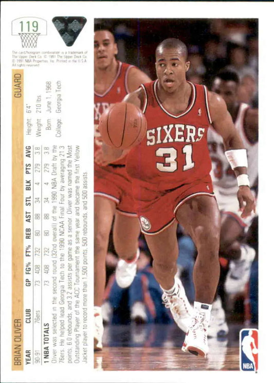 1991-92 Upper Deck #119 Brian Oliver NM-MT Philadelphia 76ers Basketball Card