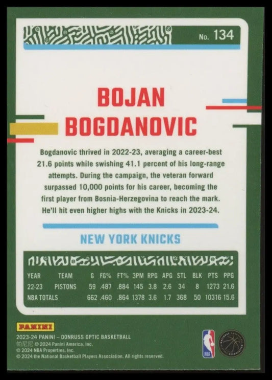 2023-24 Panini Donruss Optic Bojan Bogdanovic #134 New York Knicks Basketball