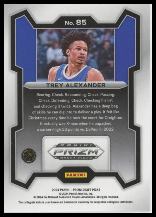 2024 Panini Prizm Draft Picks Trey Alexander #85 Rookie Basketball Card NCAA