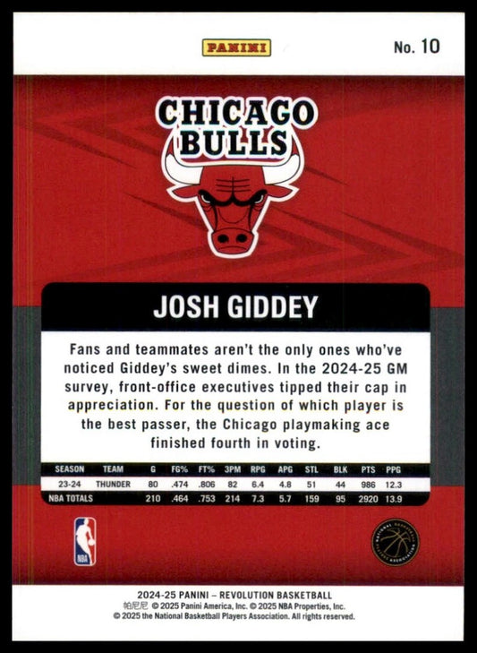 2024-25 Panini Revolution Josh Giddey #10 Chicago Bulls Basketball Card NBA