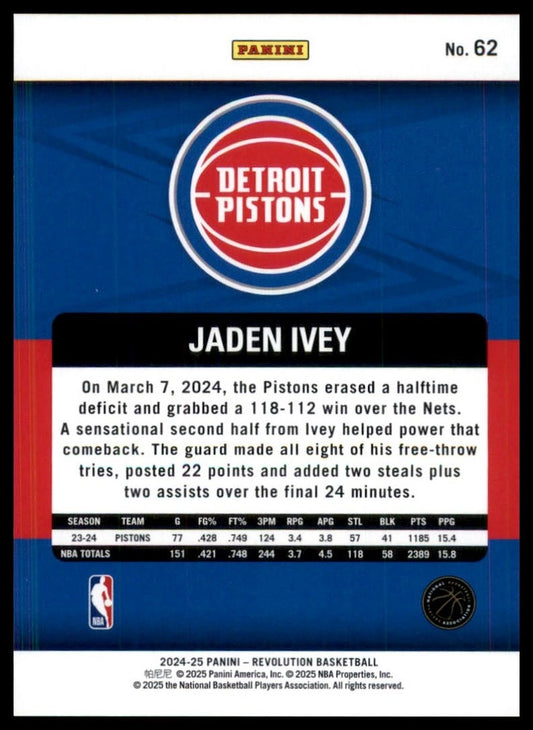2024-25 Panini Revolution Jaden Ivey #62 Detroit Pistons Basketball Card NBA